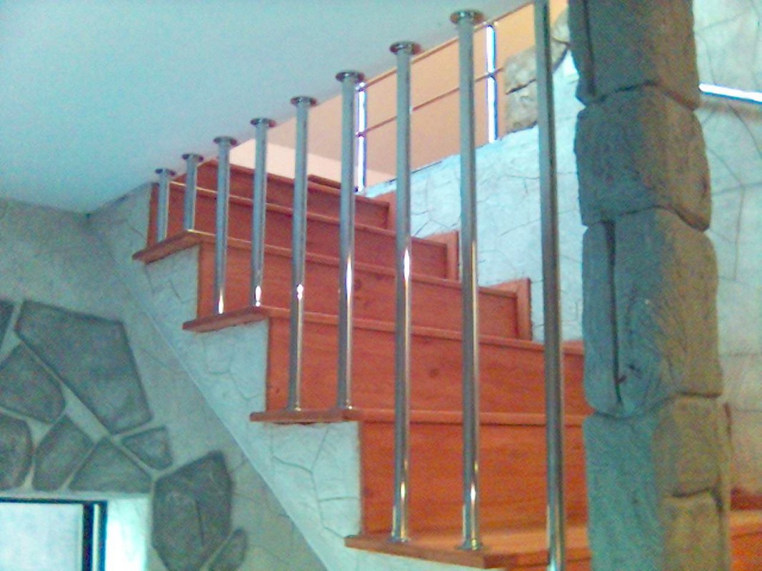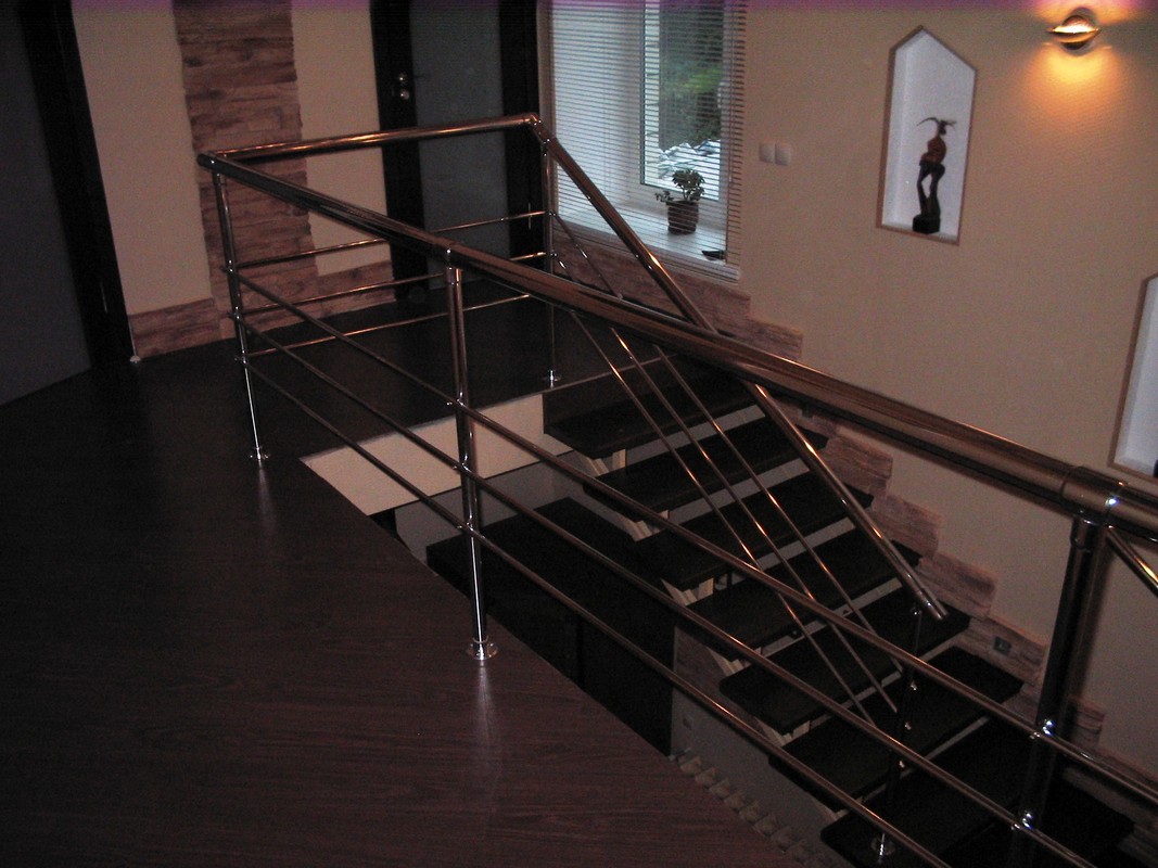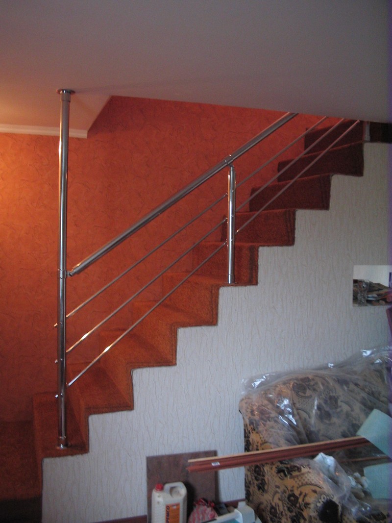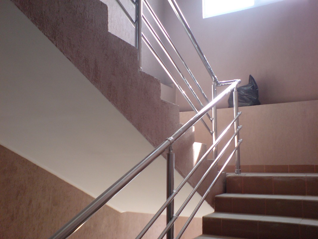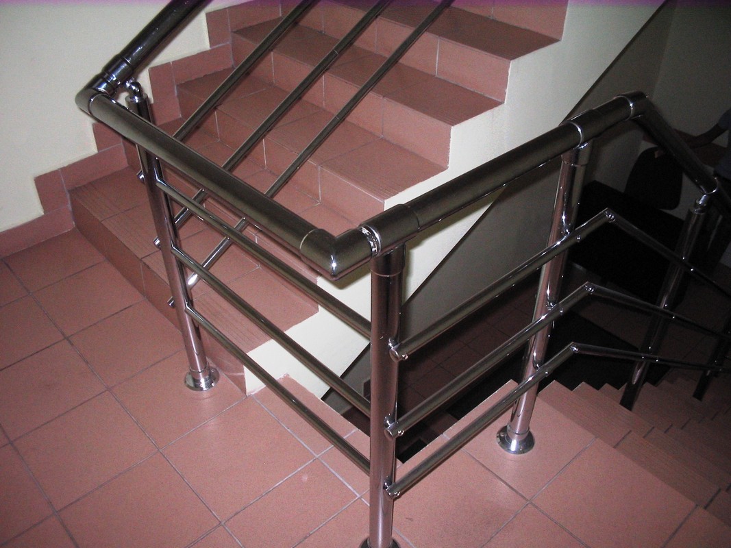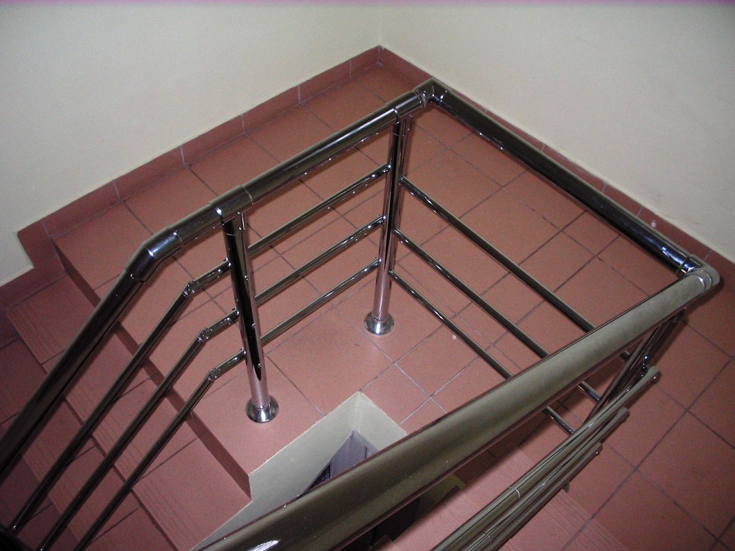 Хромированные перила являются сборной конструкцией, которая собирается из хромированных узлов без помощи сварки. Это позволяет монтировать их практически в последний момент, то есть при завершении Вашего ремонта. По внешнему виду они очень похожи на перила из нержавеющей стали. Они быстро изготавливаются (монтируются), но несмотря на все плюсы у них есть один недостаток — их нельзя ставить на улице и во влажных помещениях.