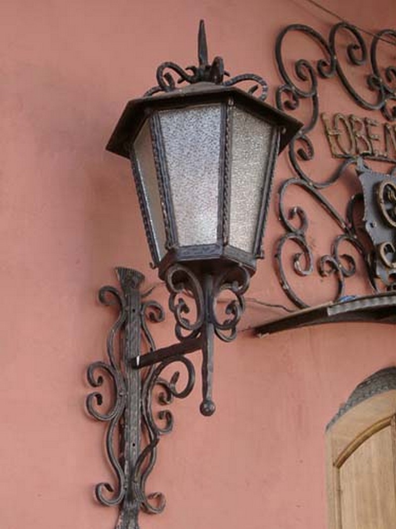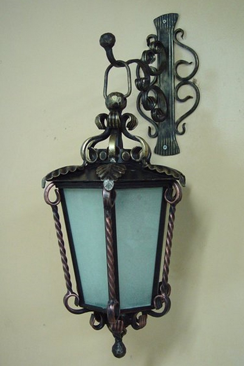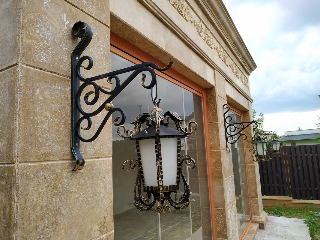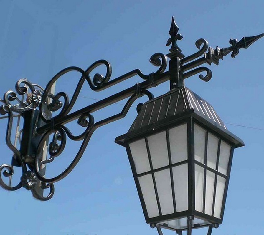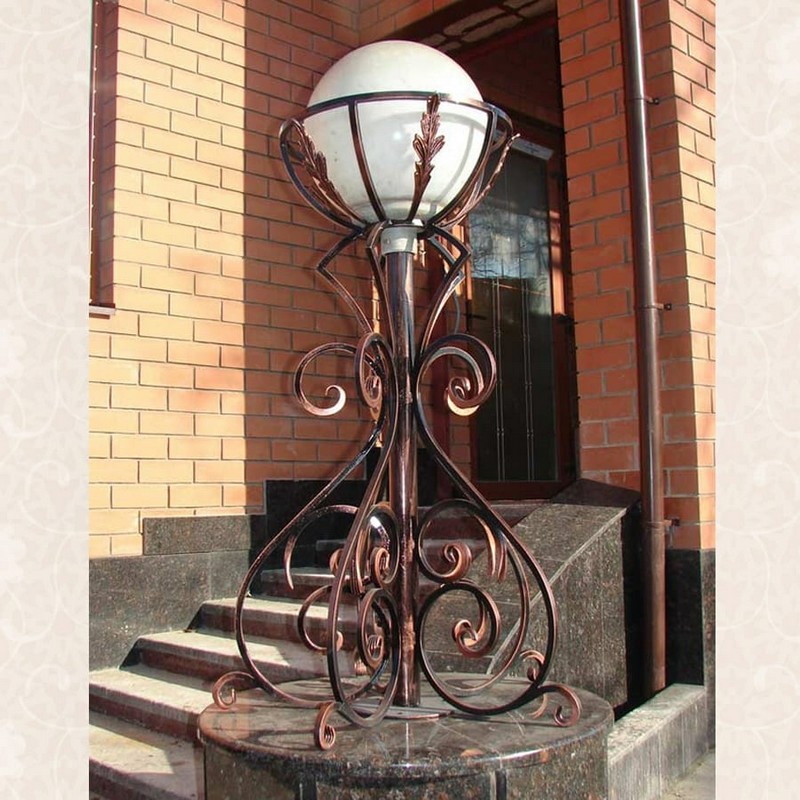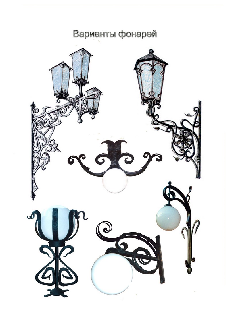 Уличные светильники могут располагаться как возле дома, так и рядом с входной дверью, на заборе, у ворот, на стене и в других, порой самых неожиданных местах. Они не только будут освещать территорию, но и создадут неповторимую атмосферу прямо у вашего дома. Немаловажно правильно подобрать дизайн, ведь кованые светильники и фонари хорошо видны не только ночью, но и днем, внося, тем самым, свой вклад в общий вид вашего участка. К сожалению, об освещении часто забывают и часто рядом с красивыми домами с коваными забором, калиткой, воротами и великолепным кованым козырьком можно наблюдать банальный прожектор. Попробуйте соблюсти стилистику, поставьте кованые фонари по участку и у входа и вы увидите, как преобразиться все пространство. В любом случае, размеры фонарей, их дизайн и стиль ограничены только условиями эксплуатацией и вашей фантазией.